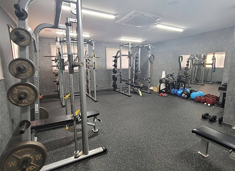 全身のトレーニングを行うことができ、目的とする部分以外の筋肉も刺激できるフリーウエイト器機を完備しています。また、複数台あるため、数人同時にトレーニングを行える環境です。